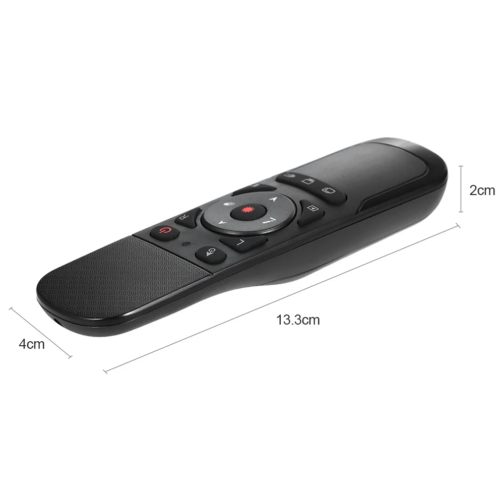 This multi-functional intelligent remote control is a set of air mouse, laser flip pen, Android remote control and somatosensory control functions.